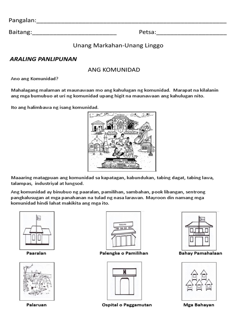 Paglalarawan sa kinabibilangang komunidad ayon sa mga batayang impormasyon at kinalalagyan 4. Report an issue. Kahalagahan ng Komunidad Sa modyul na ito inaasahang maipamamalas ng mag-aaral ang.