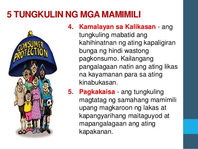 Tungkulin ng isang mamimili. Tungkulin ng mga mamimili na maging matalino sa pagpili at pagsuri ng mga produkto at serbisyo. Bakit nagkakaroon tayo ng karapatan bilang isang mamimili. HINALUANPINAGBABA WALMALING ETIKETA NG GAMOT PAGKAIN PABANGO AT MAKE.
