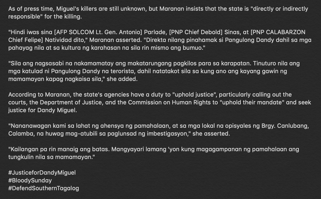 Mike Navallo On Twitter Defend Southern Tagalog Says Miguel Is Latest Victim In The Duterte Regime S All Out War Against The Working Class Blames Red Tagging Of Miguel And His Org Pamantik Kmu For His Death