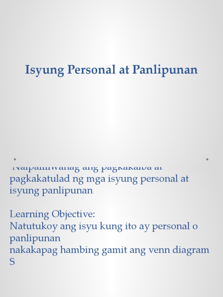 Tungkulin din nating tasahan ang ating mga talento kakayahan at hilig at gamitin ito nang wasto sa makabuluhang bagay lamang. Isyung panlipunan sa karapatang pantao. ISYUNG PANLIPUNAN Sa paksang ito malalaman natin ang ibat ibang klase ng mga isyung panlipunan at ang mga sanhi nito.