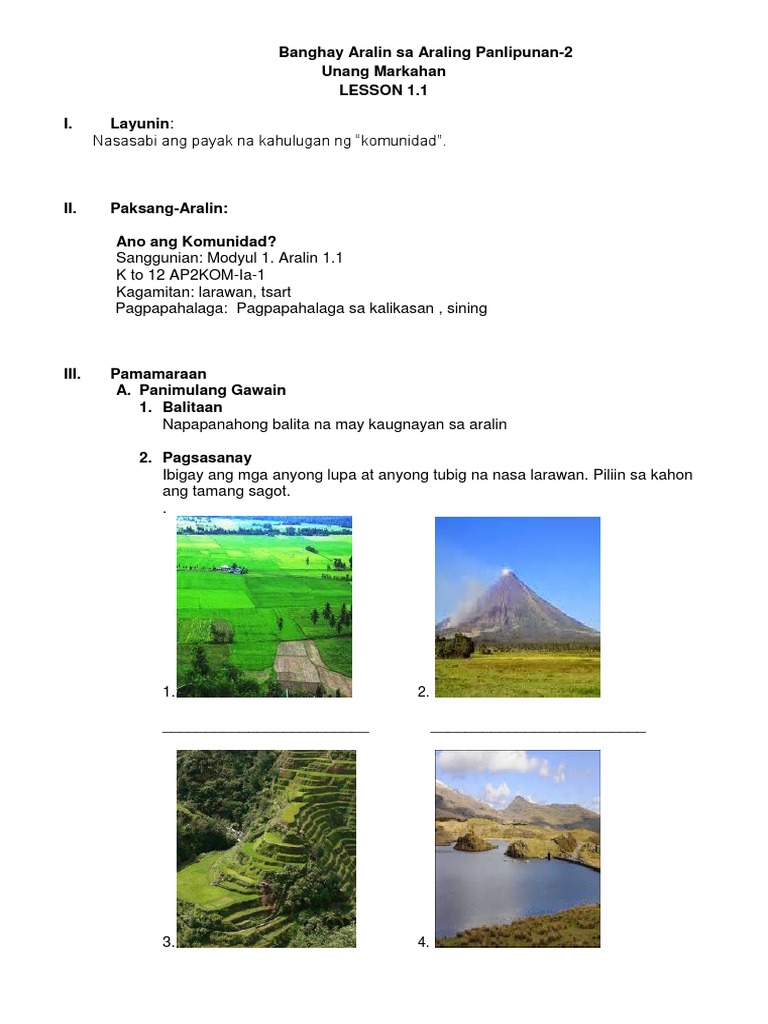 Tungkulin ng palengke sa komunidad. 2Nagmamadali sa pag-uwi at malayo pa ang iyong lalakarin upang tumawid sa tamang tawiran at walang pulis na nag babantay. Ito ay matatagpuan sa Araling Panlipunan Unang Markahan-Unangn Linggo batay sa MELC. Paglalarawan sa kinabibilangang komunidad ayon sa mga.