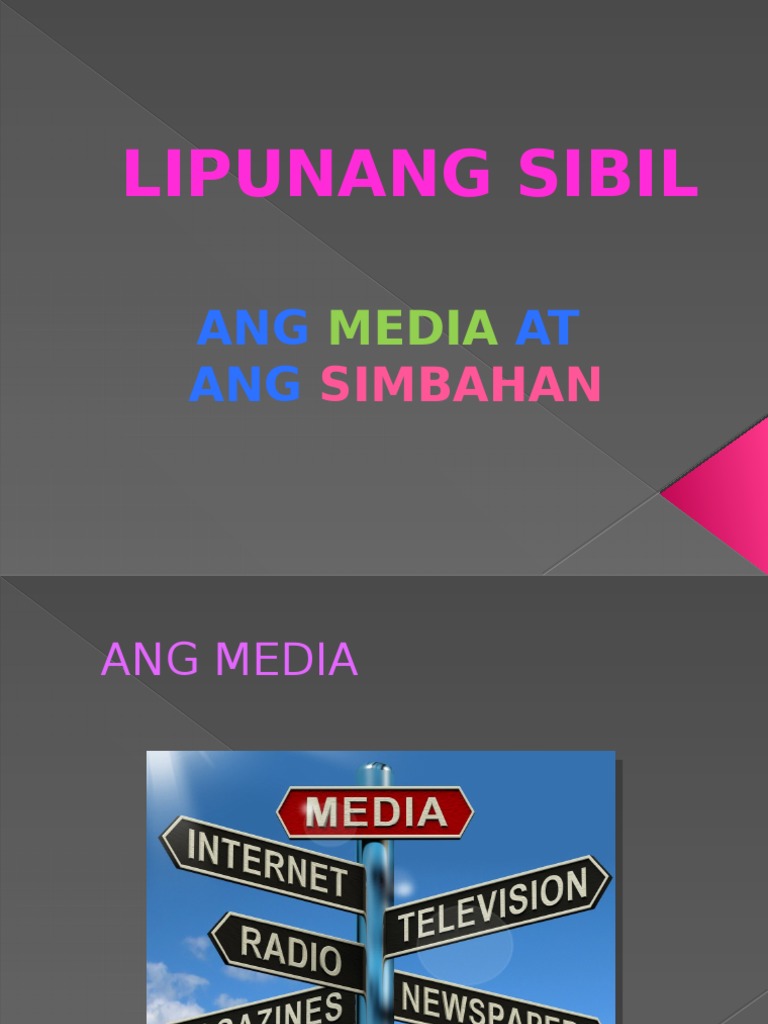 O Ang pangunahinglayunin ng media bilang isang anyo ng lipunang sibil ay magsulong ng ikabubuti ng bawat kasapi ng lipunan. Ito ay presentasyon na naglalaman ng buong aralin sa EsP 9 Modyul 4. Napalalakas ang interest sa mga mabuting adhikain at adbokasya ng Lipunang Sibil at Pamahalaan tungo sa kabutihang.